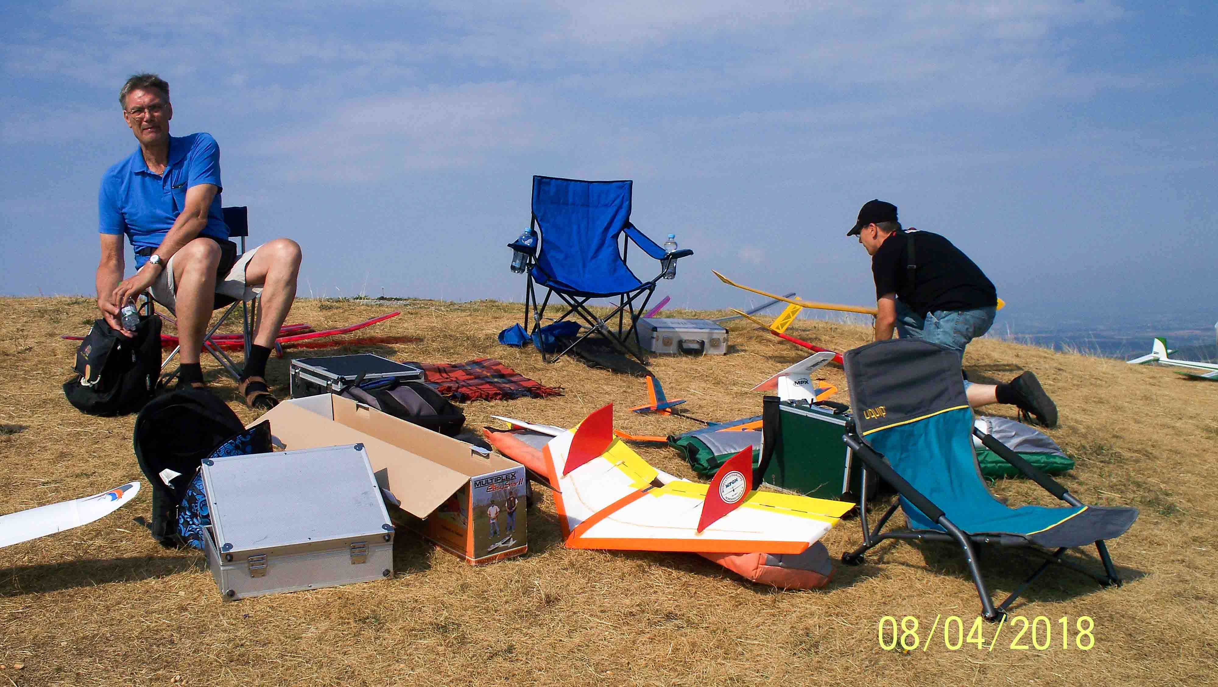 Donnerstag begann mit bedecktem Himmel und Wind aus SO, so dass wir unschlüssig waren, wo man fliegen könnte. Geöffnet war dann wieder der Südhang, und es ging erstaunlich gut. Meine beiden Flugschüler, Jesper und Mark, die mit ihren eigenen Modellen (DG-1000 mit Klapptrieb-werk bzw. Easy Star) auf meiner Anlage flogen, konnten reichlich Erfahrung sammeln.